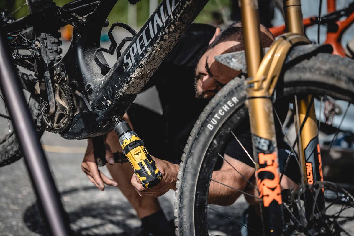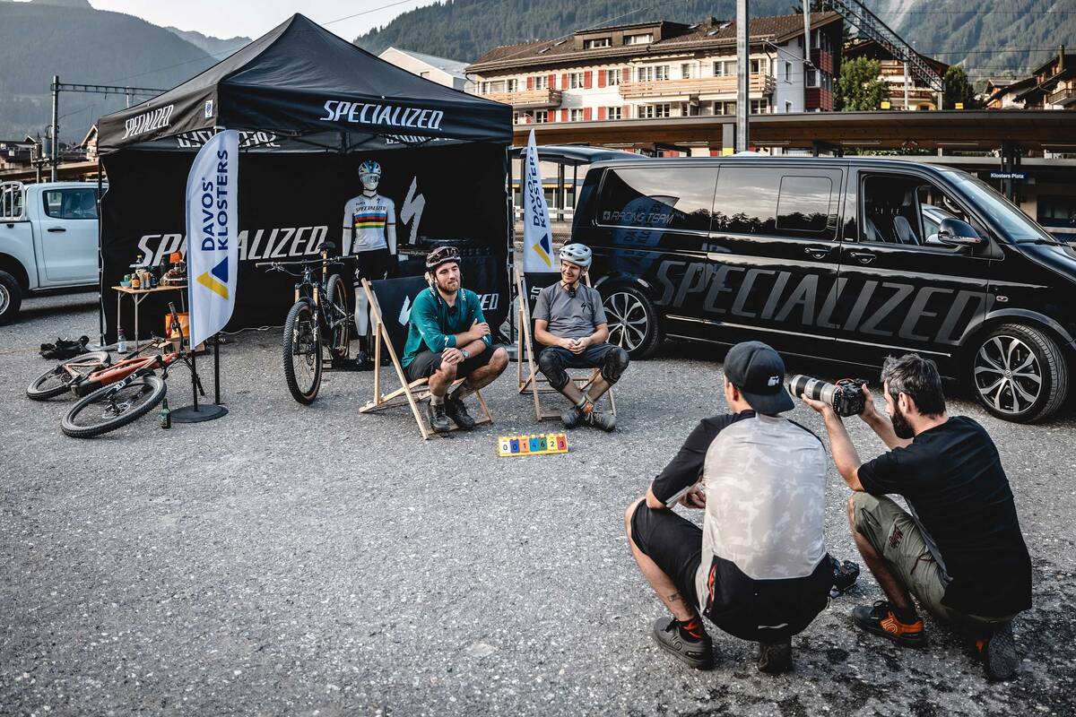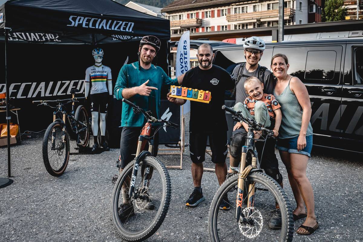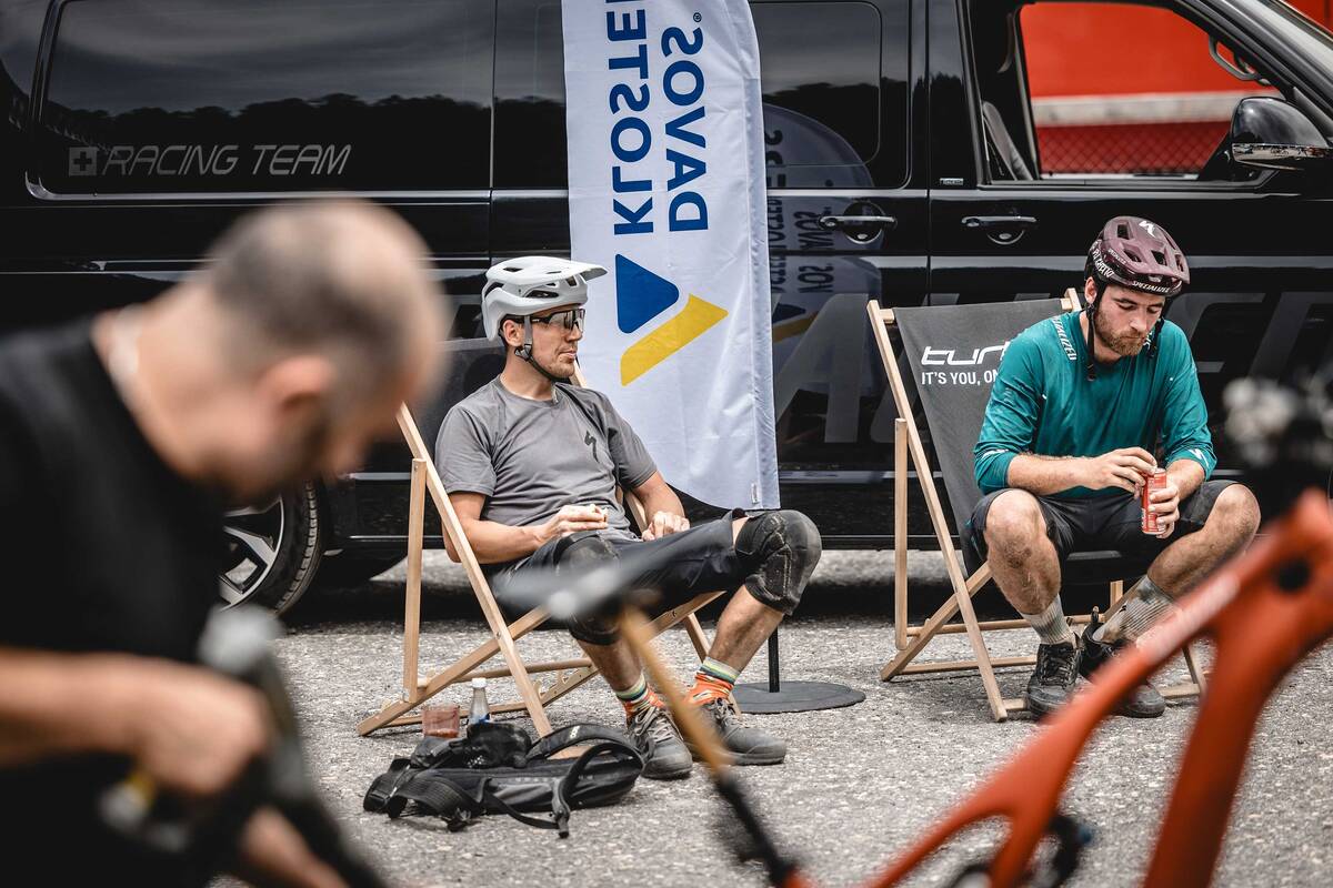 Für ihren Weltrekord fuhren van den Berg und Chapuis den ganzen Tag mit dem gleichen Bike, dem «Specialized Turbo Levo». «Mit einem 700er-Akku erklommen wir im Powermodus über 1'500 Höhenmeter», sagt van den Berg. Trotzdem war eine gute Baterieplanung wichtig. Denn laut Reglement durfte das Serviceteam die Rekordjäger nicht begleiten, sondern musste an einem vordefinierten Ort warten. Das war in Klosters bei der Gotschnabahn. Nur dort durften Akkus gewechselt oder Reparaturen vorgenommen werden. Zudem waren für den Weltrekordversuch nur handelsübliche E-Mountainbikes mit normalen Akkus zulässig, die bei 25 km/h abgeriegelt sind.
